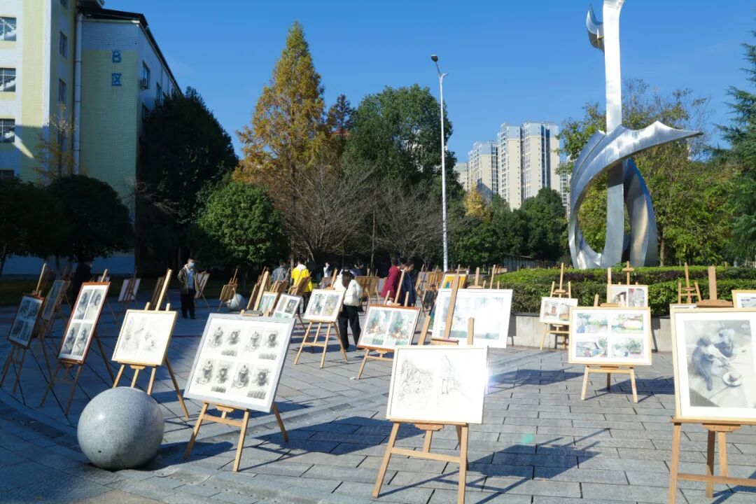 文体艺术节期间,学校艺术组教师将收集到的百余幅师生书法、绘画作品,精心布置陈列于博文广场。师生们纷纷驻足欣赏、交流感悟。这些作品既彰显出同学们丰富的创造力与天马行空的想象力,更展露了他们扎实的艺术功底与极高的艺术天赋。