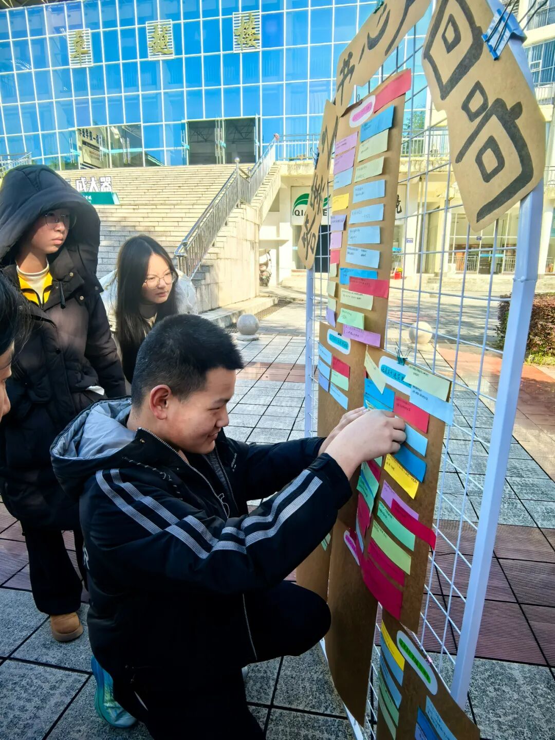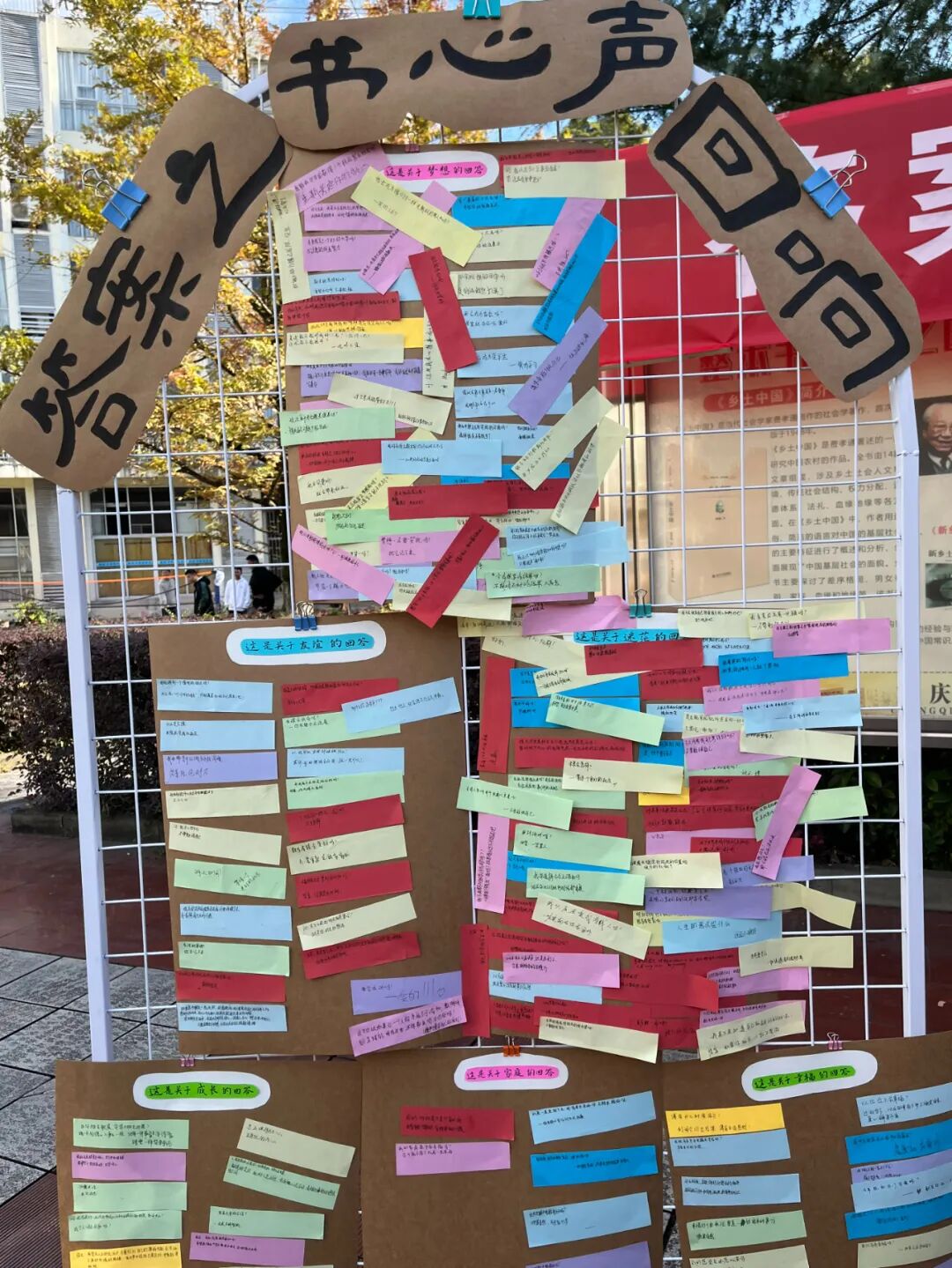 校园心理主题活动同步开展,为学子搭建探索内心的平台。心理连环画创意接龙大赛中,同学们画笔接力共创故事;“答案之书,心声回响” 活动里,大家寻心灵指引、写感悟贴墙,在分享中收获温暖与力量。