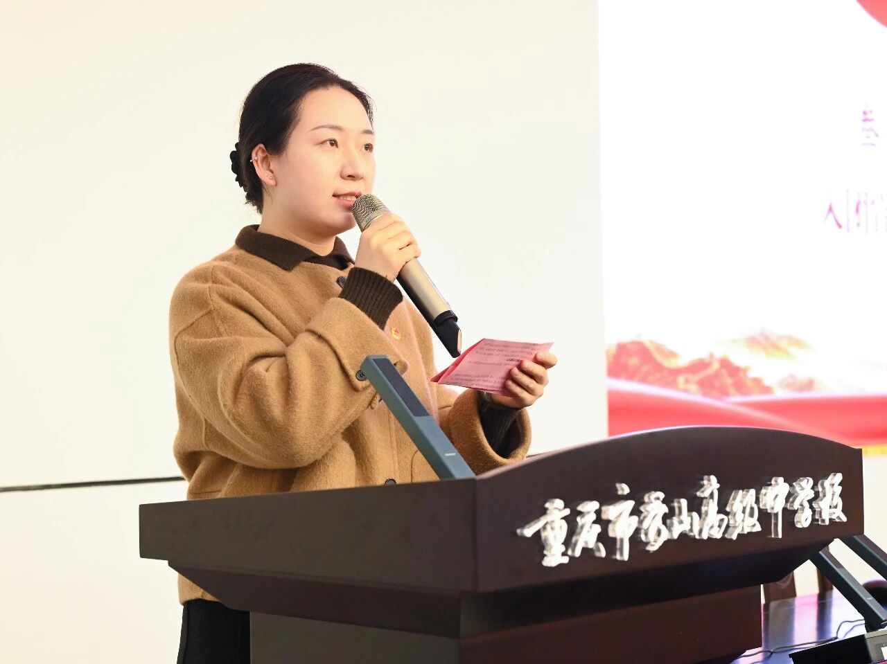党委书记杨秀文以《从“我的答案”到“我们的答卷”》为题,将时代叙事与学校发展紧密结合,深情回顾了我校16年办学征程,并面向全体新团员,提出立大志、明大德、担大任的殷切希望,为全体新团员讲授了一堂立意高远、内容生动的入团第一课。