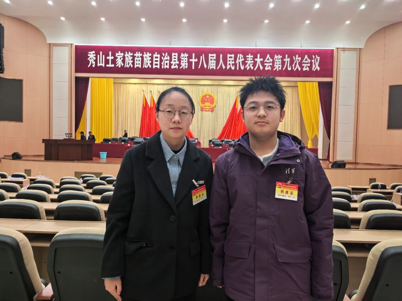1月20日至21日,秀山土家族苗族自治县第十八届人民代表大会第九次会议胜利召开并圆满闭幕。我校优秀毕业生——现就读于复旦大学的姚婷婷、清华大学的梅颢蓝以青少年代表身份受邀列席本次会议,全程旁听第一次全体会议、第二次全体会议及闭幕式,以青年视角见证家乡发展蓝图擘画,沉浸式感受全过程人民民主的生动实践。