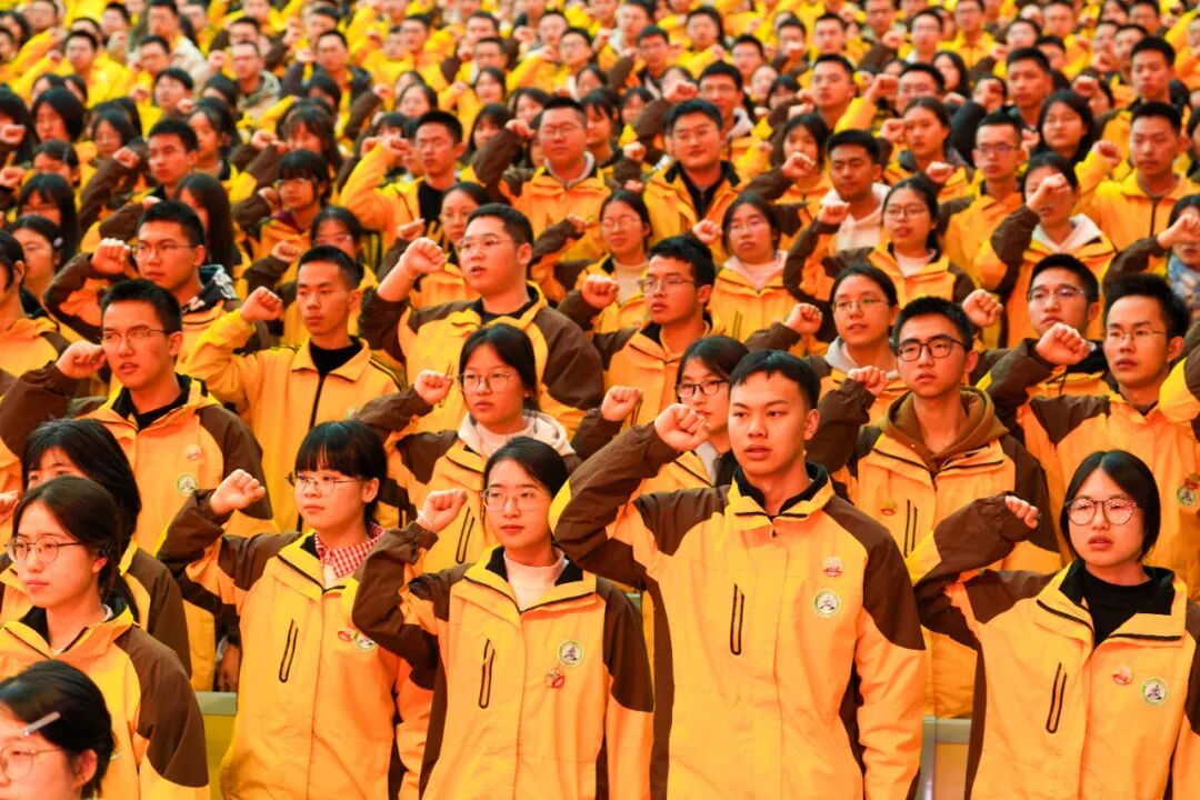 在赵致愽同学的带领下,两千余名高三学子的宣誓声响彻会场,他们站如松、目如炬、声如钟,那是青春的怒吼,是对六月胜利的渴望!