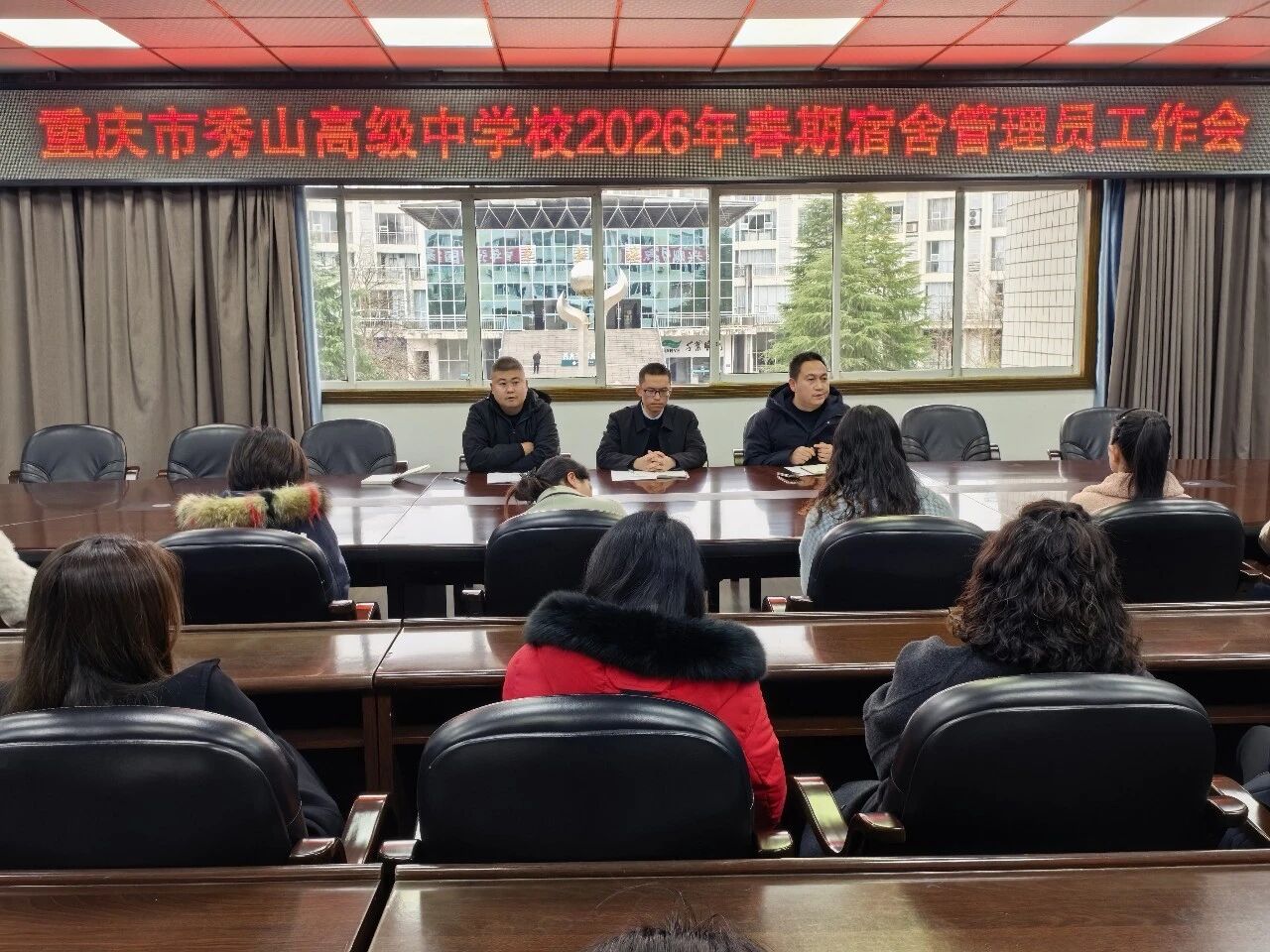 3月5日,德育处以“聚焦宿舍管理质量,打造干净暖心家园”为主题,组织召开宿舍管理员专题会议。德育处主任杨力对新学期宿舍卫生、纪律、安全管理等工作提出明确要求,强调全体宿管员要准时到岗、履职尽责,强化学生安全与设施安全管理,加强日常巡视、规范填写寝室巡查记录,既要严格执行宿舍管理规章制度,也要主动关心关爱学生,让宿管工作既有力度更有温度。保卫处副主任郭朝忠同步强调门禁管理、消防安全及违禁品排查等要求,筑牢宿舍安全防线。罗云东副校长在总结讲话中,高度赞扬了宿管员敬业奉献的精神,并就关注学生精神状态、及时排查处置异常情况、落实“早发现、早关心、早帮助”工作要求作出具体部署,推动宿管工作提质增效。