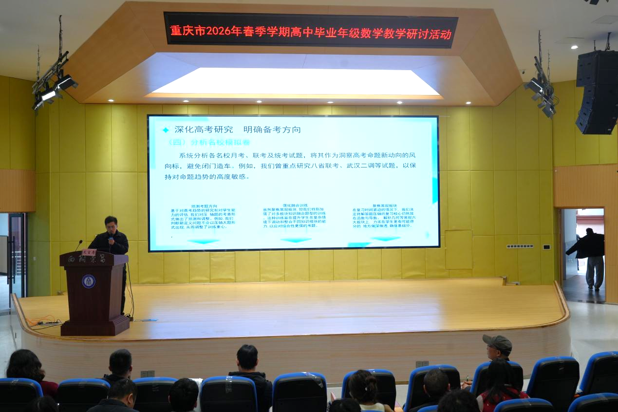 3月19日,由重庆市教育科学研究院主办的“聚焦评价改革—赋能新卓越课堂”高三“二轮”复习备考经验交流活动,在西南大学附属中学荣昌实验学校顺利落幕。此次活动汇聚川渝两地教育教研专家及各学校高三备考骨干教师,围绕高考后期复习的新思路、新方法展开深入研讨,为高三“二轮”复习提质增效、精准发力指明了方向。