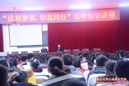 为进一步推进法制宣传教育进学校,增强学生的法制观念,12月21日晚18:00,乌杨派出所副所长何玉锋和社区民警杨处军来到秀山高级中学,对高一年级学生开展法制宣传教育活动。