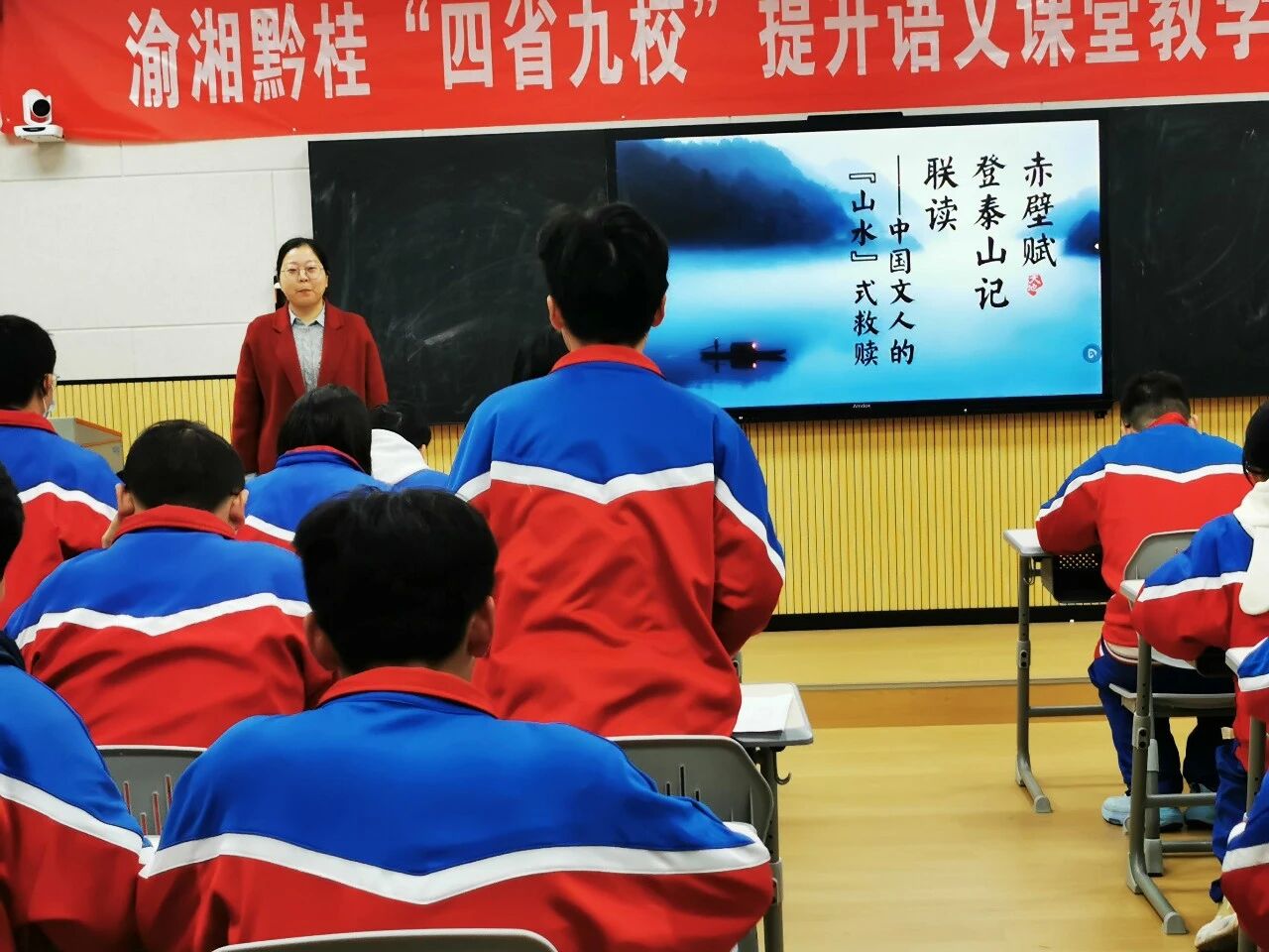 11月28日上午,彭洪明工作室成员张丽丽老师为沿河民族中学高二(1)班同学带来《赤壁赋》《登泰山记》群文联读教学,以文本内在关联构建框架,通过精准提问、读写联动引导学生挖掘古文内涵与艺术特色,展现了工作室在群文教学领域的实践成果,获得现场听课教师的广泛认可。
